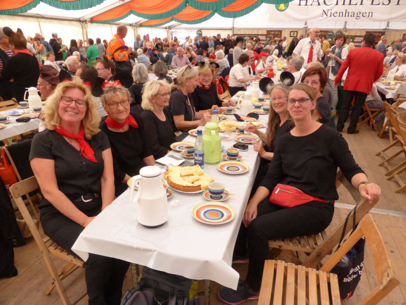 In diesem Jahr haben einige Nienharmoniker für den Gesangverein den Hachewagen geschmückt. Das Motto stand ganz klar im Zeichen unseres wunderschönen Hobbys, nämlich des Singens im Chor! Auch einige Mitglieder des Hagenchores sind auf dem Wagen mitgefahren. Alle Teilnehmer hatten sichtlich ihre Freude bei herrlichem Sonnenwetter.
