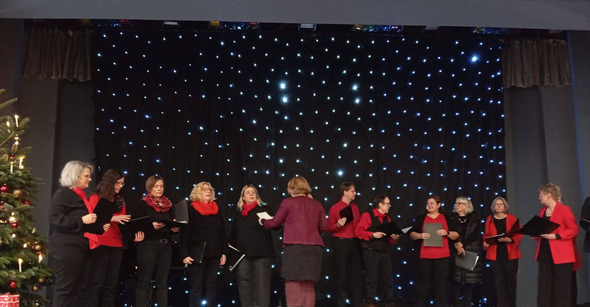 Auch in diesem Jahr traten die Nienharmoniker während des Weihnachtsmarktes der Gemeinde Nienhagen auf. Rund eine halbe Stunde erklangen Advents- und Weihnachtslieder. Imke Ortmann, die Chorleiterin, animierte auch die Zuhörenden zum Mitsingen.